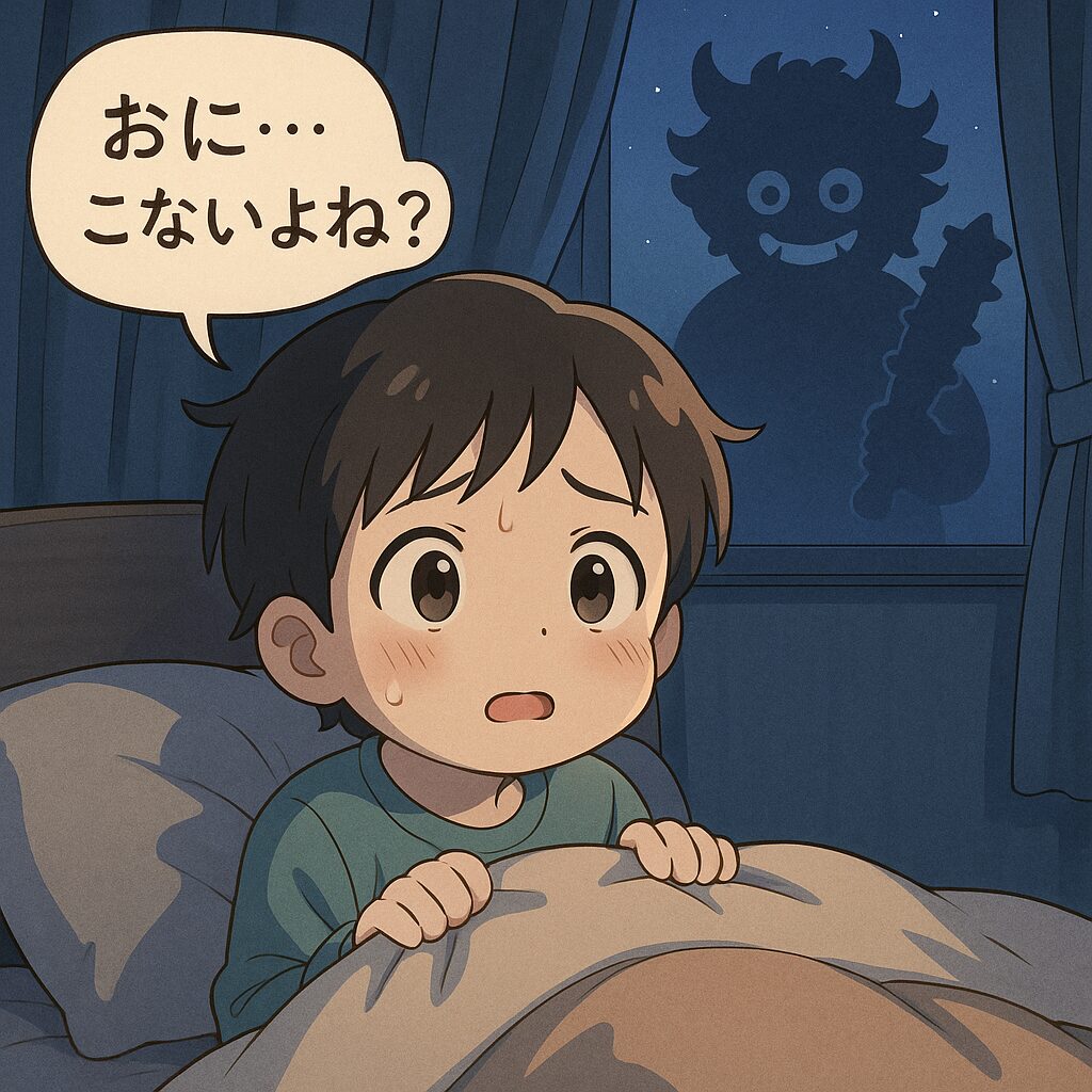 「遅くまで起きてたら、夜の鬼に見つかっちゃうよ〜」