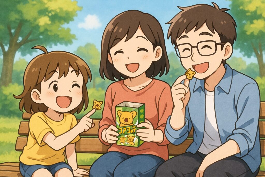 ひとしきり遊んだあとは、公園内にあるローソンでお菓子タイム。ここで始まったのが「コアラのマーチゲーム」。